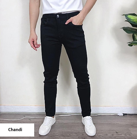 Quần Jean Nam Đen Trơn cao cấp thương hiệu Chandi, phong cách tôn dáng nam tính chất jean co dãn Mẫu J20